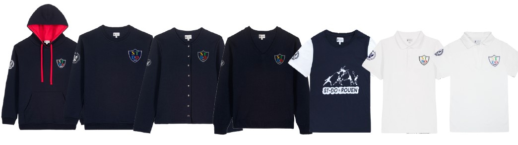 Nous sommes attentifs à la beauté des textiles, des broderies et des couleurs définissant l’identité visuelle de l’Institut. Certains modèles ont été personnalisés spécialement pour St-Do Rouen comme la capuche et le cordon rouges, la maille et l’encolure de la coupe filles du polo, le bicolore du t-shirt de l’AS, une double broderie St-Do et dominicaine.